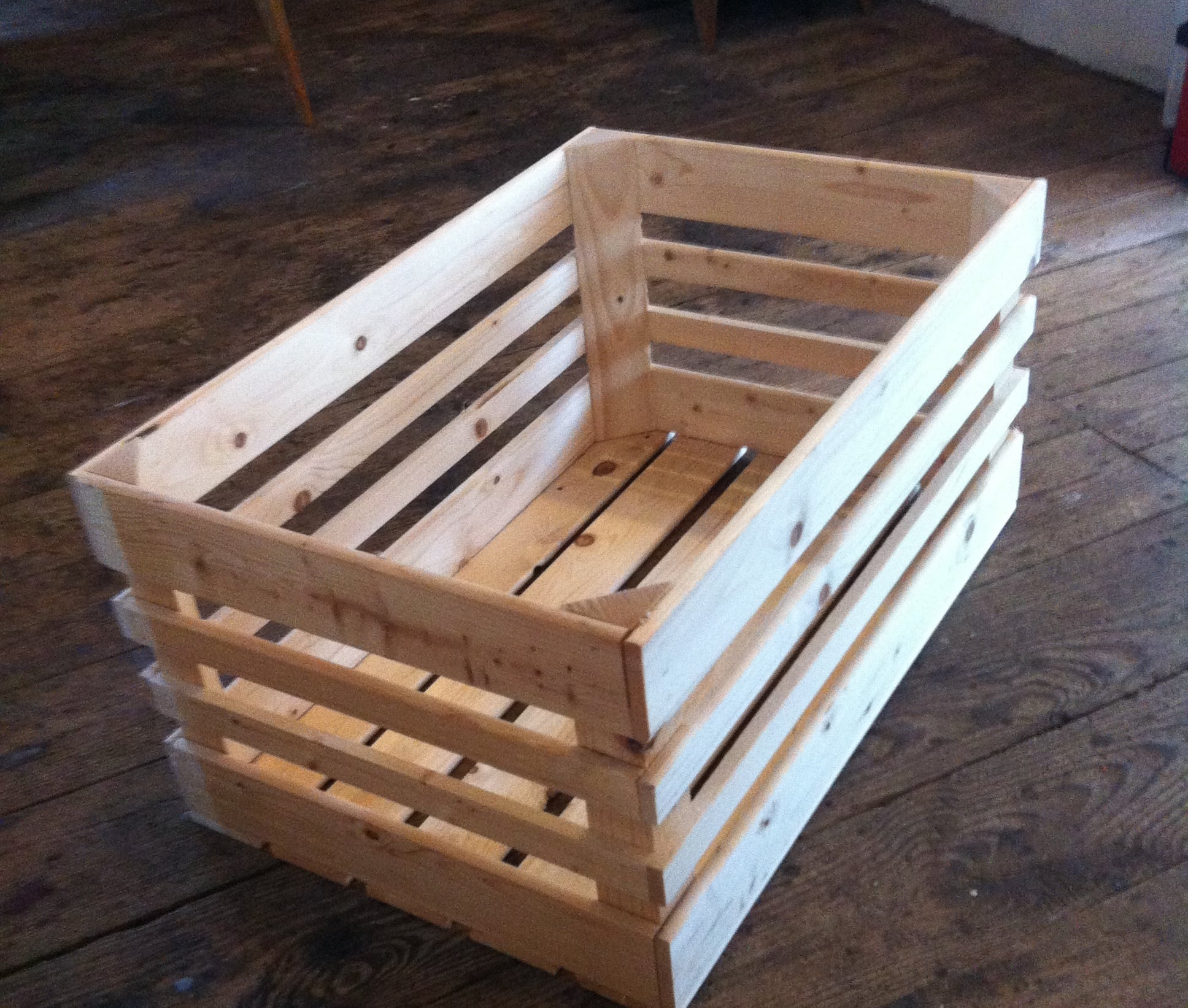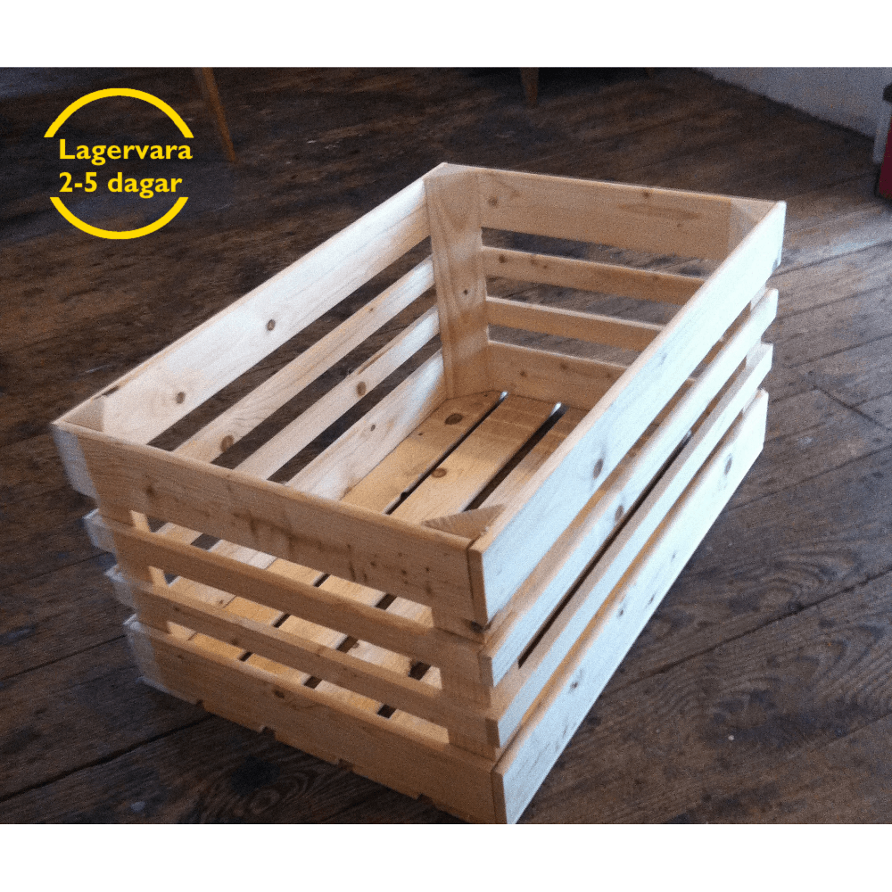 En enkel stiftad äppellåda i klassisk stil tillverkad av gran i Genarp i Skåne.