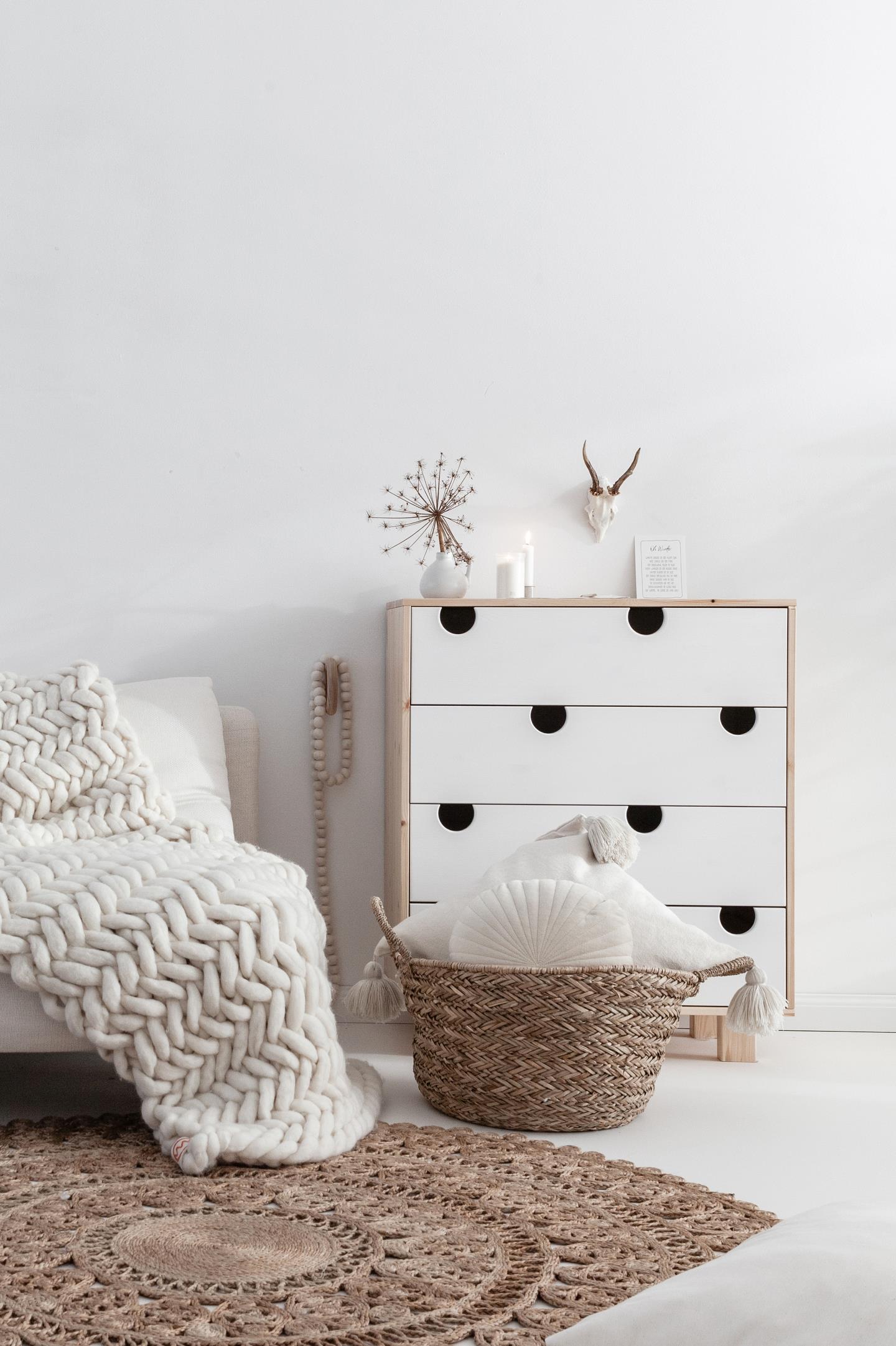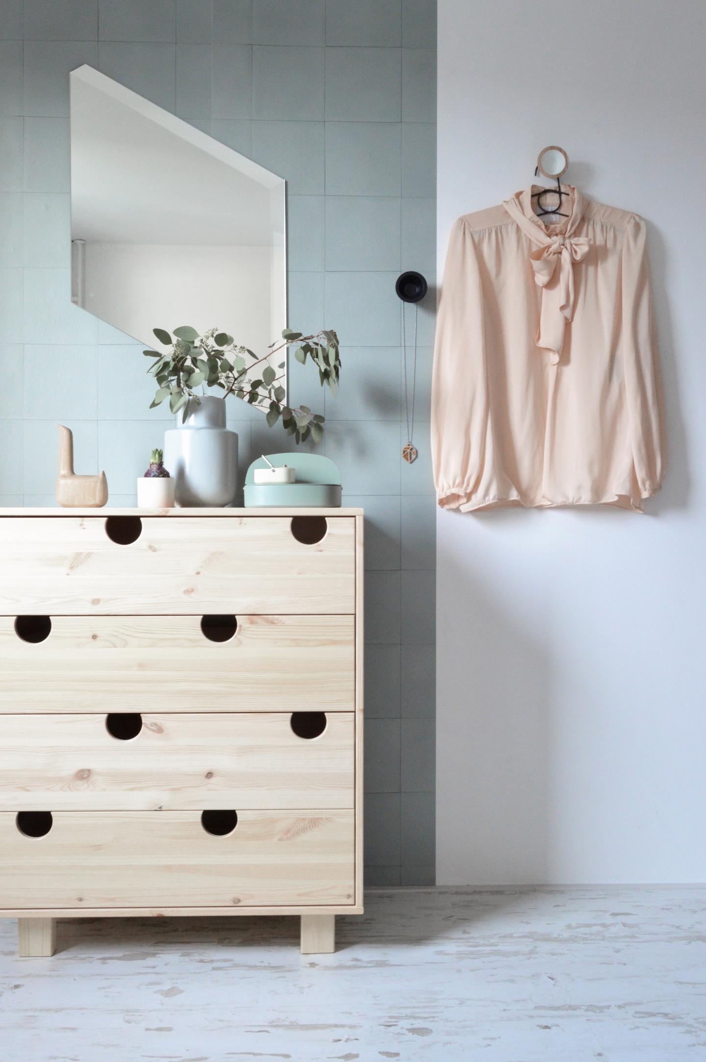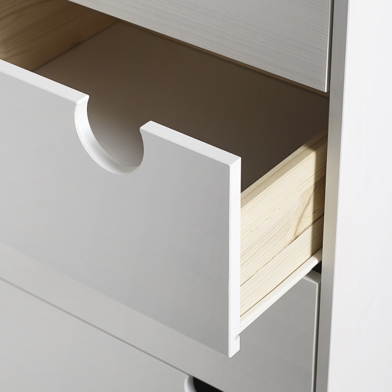 House byrå finns i vit eller enfärgad furu. Du väljer själv om du vill ha enfärgad eller en annan färg på lådorna.