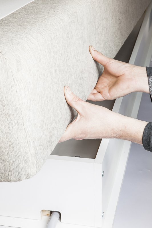 Sängskåpet har som standard genomgående synliga skruvar. Vi säljer även till täcksidor om så önskas, så att skruv hålen döljs. Eller om du bara vill ha enkla plastbrickor som täcker hålen i samma material som skåpet så ordnar vi det.